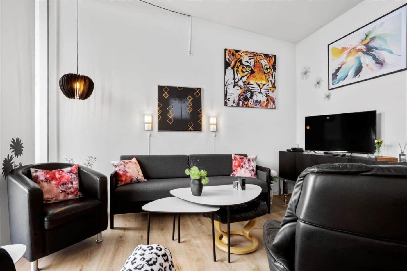 The spacious apartment has 1 bedroom, a TV, a fully equipped kitchen with a dishwasher and an oven, a washing machine, and 1 bathroom with a shower. The accommodation is non-smoking.
